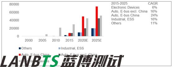 2025 年汽車成為鋰電池最大應用領(lǐng)域